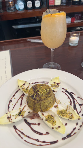 I’m writing this in the middle of my meal because it’s so good. (And also Im killing time before a show). This place was recommended to me in a travel group for a spot out of the craziness of Times Square yet close enough to grab dinner beforehand. I will honestly say just looking at the menu I was not crazy about anything in particular but the selections were quite varied (protein wise… chef sure likes asparagus 😳). I was intrigued by the sole but didn’t like the accompaniments, steak frites sounded good but boring. I never order filet because it tends to be a tiny 3oz portion lacking flavor and never cooked right but the scalloped potatoes were calling my name. So I decided to get it but ordered the goat cheese and pistachio soufflé to start because you know tiny steaks. The soufflé was divine. That’s all I have to say about that. Right about now the gorgeous Ginberly Akimbo cocktail is kicking in. So I should mention the generous strong drinks. Delicious. My steak has arrived and is surprisingly large. Cooked perfectly and the tomato jam on top with the nice salty crust makes it the most flavorful and a little spicy filet Ive ever had. But the potatoes. Bless your heart if you’ve read this far. I could write an epic love poem to the potatoes. Like millefeuille it had layers upon layers of thin sliced potato and cream. Just divine. The prices are high, but on par for NYC, it’s not a budget place. Normally when solo-traveling I favor sitting at the bar. Id recommend trying to get a table though. They still have waitstaff for the bar seats which is slightly awkward and less social. My waiter was lovely but it’s just odd. I don’t love ordering over my shoulder. All in all I was well impressed and can recommend this place to anyone wanting to get away from the cacophony of Times Sqr for a really nice meal.