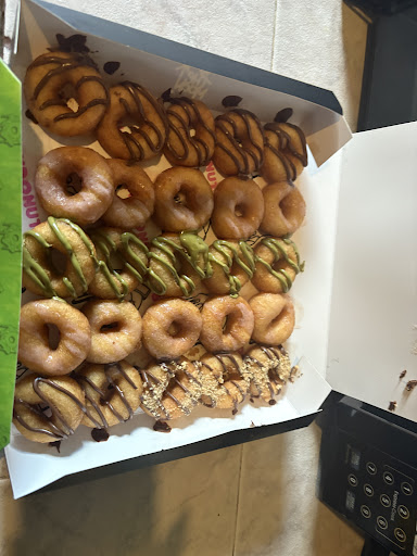 Ā Ā Ā Read moreMy 1st visit was today recommended by my son. Unfortunately Iām a little disappointed. I ordered 25 donuts with the following icings 5 strawberry, 5 pistachio, 5 Nutella and 10 with no icing only powered sugar. My order was totally wrong. The guy preparing our order asked me if I wanted powder sugar on all the donuts I went over to the counter and told him no only on the plain. āHe says you did not order plainā I said yes I did . Not to go back and forth I just let it be. I get home and open the box to find that he did not follow my order at all. See the photo. He literally repeated the order to me and still got it wrong. The 4 stars are for the donuts they are delicious. The guy taking and preparing orders needs to follow instructions or write the orders down ....