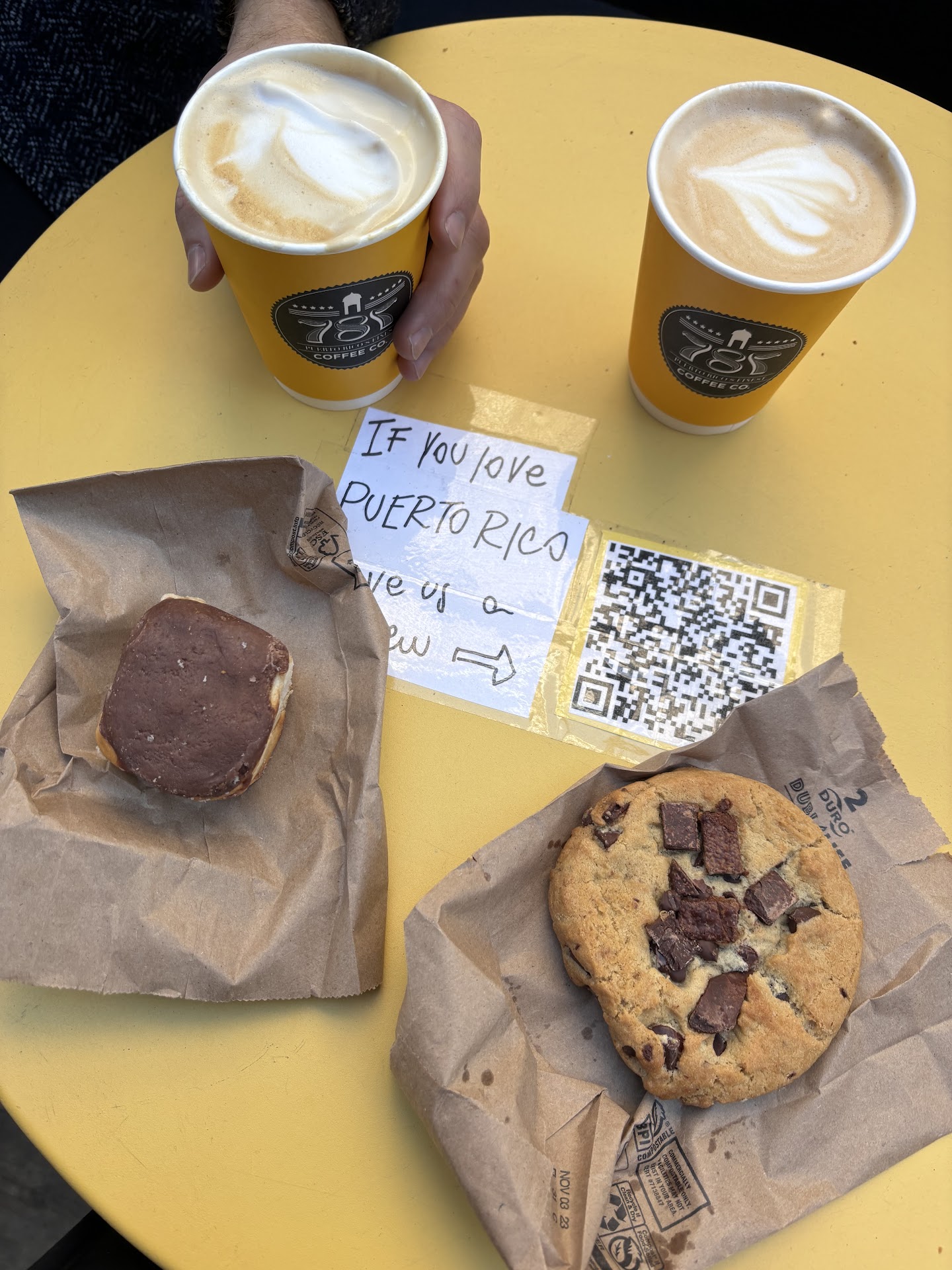 My husband and I were visiting NYC for the weekend and were on the hunt for good coffee and a pastry to accompany us on our walk throughout the city. We made a beeline to 787 Coffee after reading the reviews, and let me tell you â the reviews DID NOT LIE. This coffee shop was FAN-FRIGGEN-TASTIC!!!! My husband ordered the Rumquito latte and I ordered the Dulce de Leche latte (both with whole milk) and enjoyed them at the tables out front. Both beverages were absolutely delightful and far exceeded my expectations. The Dulce de Leche latte had the perfect level of sweetness and the Rumquito latte had bits of coconut in it that really enhanced the drink. We also ordered a chocolate chip cookie and the chocolate concha and they were also fantastic (Iâll be dreaming about that chocolate chip cookie for a while âDO YOU SEE THOSE CHOCOLATE CHIPS?!)! The woman working behind the counter was SO KIND and helpful and made us feel right at home! You can tell just how much love goes into the shop and every beverage produced. Do yourself a favor and stop by 787 for a delicious cup of Puerto Rican coffee the next time youâre in this neighborhood (heck even if youâre not in the neighborhood, itâs worth going out of the way for it). This coffee shop was by far one of the highlights of our trip and I canât wait to return next time...