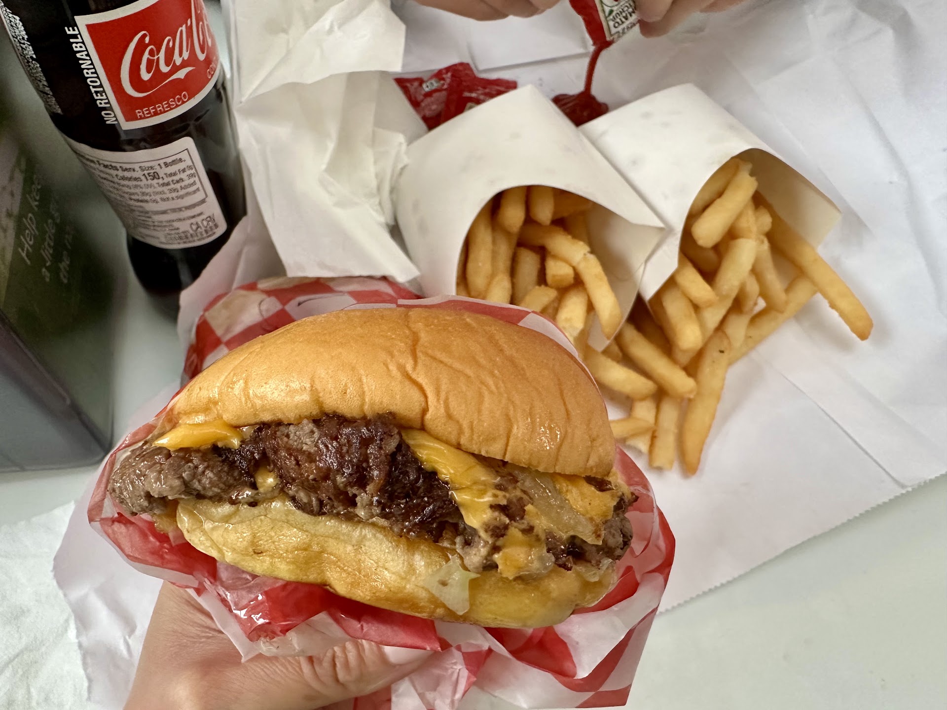 I got a double hamburger with fries and almost got a Mexican coke too but there's just so much sugar in those and I'm trying to be rockstar skinny... People act like cane sugar is healthy smh. I mean I HOUSED the fries so I can’t really be talking but whatever.