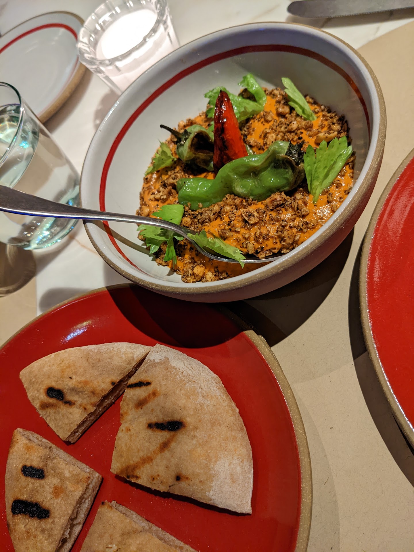 Servers were friendly. It's obvious the team is still figuring things out. We had multiple servers to our table taking orders while none of them came back to confirm the dietary restriction question we asked. The servers kept taking dishes that were not finished. They also forgot the bread we ordered, had to...