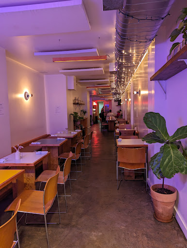 Read moreI went to this restaurant during a "Dine in the Dark" event and I was blindfolded entering into this establishment and when I was escorted out, so I have no idea regarding the decor. We were seated by the staff and the first item that they gave us to taste was garlic bread that we had to crunch on at the count of 3 to figure out the room size. I still do not know how small or large the room was. The garlic bread was very garlic-y and I do not believe it was because of my heightened sense due to being blindfolded. Also the bread was very hard I wish it would have had a soft middle. The next course was a refreshing and tasty avocado and cucumber chilled soup with basil and onions. I really enjoyed the soup. After that we had Atlantic Char that I found to be very fatty with a cabbage salad. Our main course was pork seasoned in cumin along other spices that I had no idea that it was pork and lentils that I found tasty. the dessert was a strawberry tart that was ok with a yummy mint ice cream that they made at the restaurant. The portions were enough to fill me up being that we had 4 courses and the wine pairing was very good. I would just hope that the portions would be larger if I decided to go back there without...