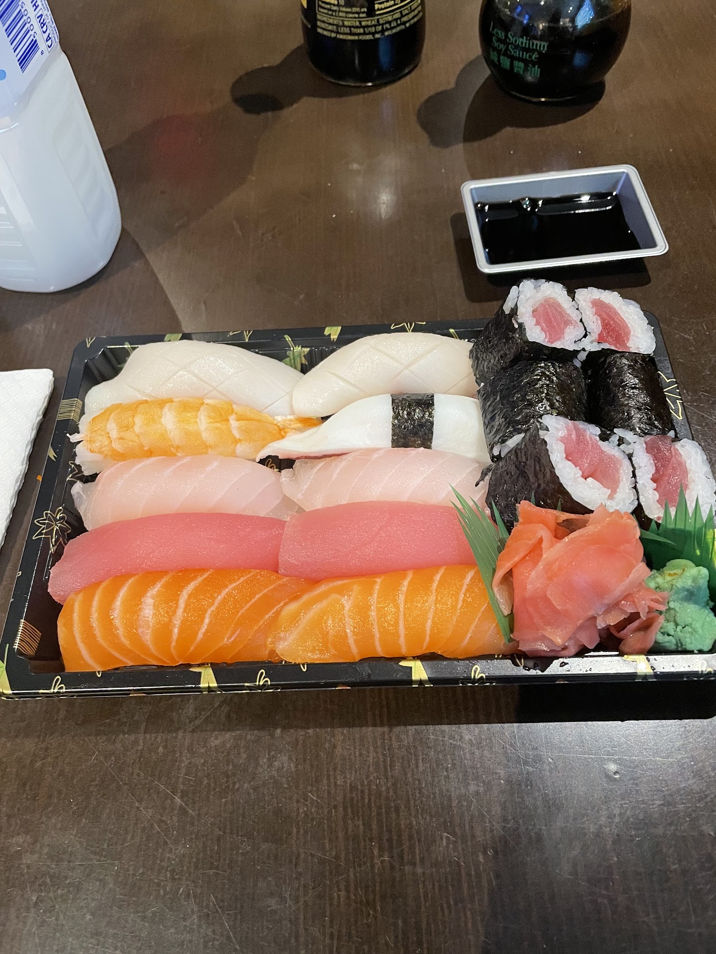 I got the sushi deluxe. Ten pieces of nigiri and a tuna roll, all for a pretty reasonable price. It was plated most compactly in the bottom of a takeout container, rather than say a plate, but I feel like that fits the tone of the place, being more of a non-fancy neighborhood joint.