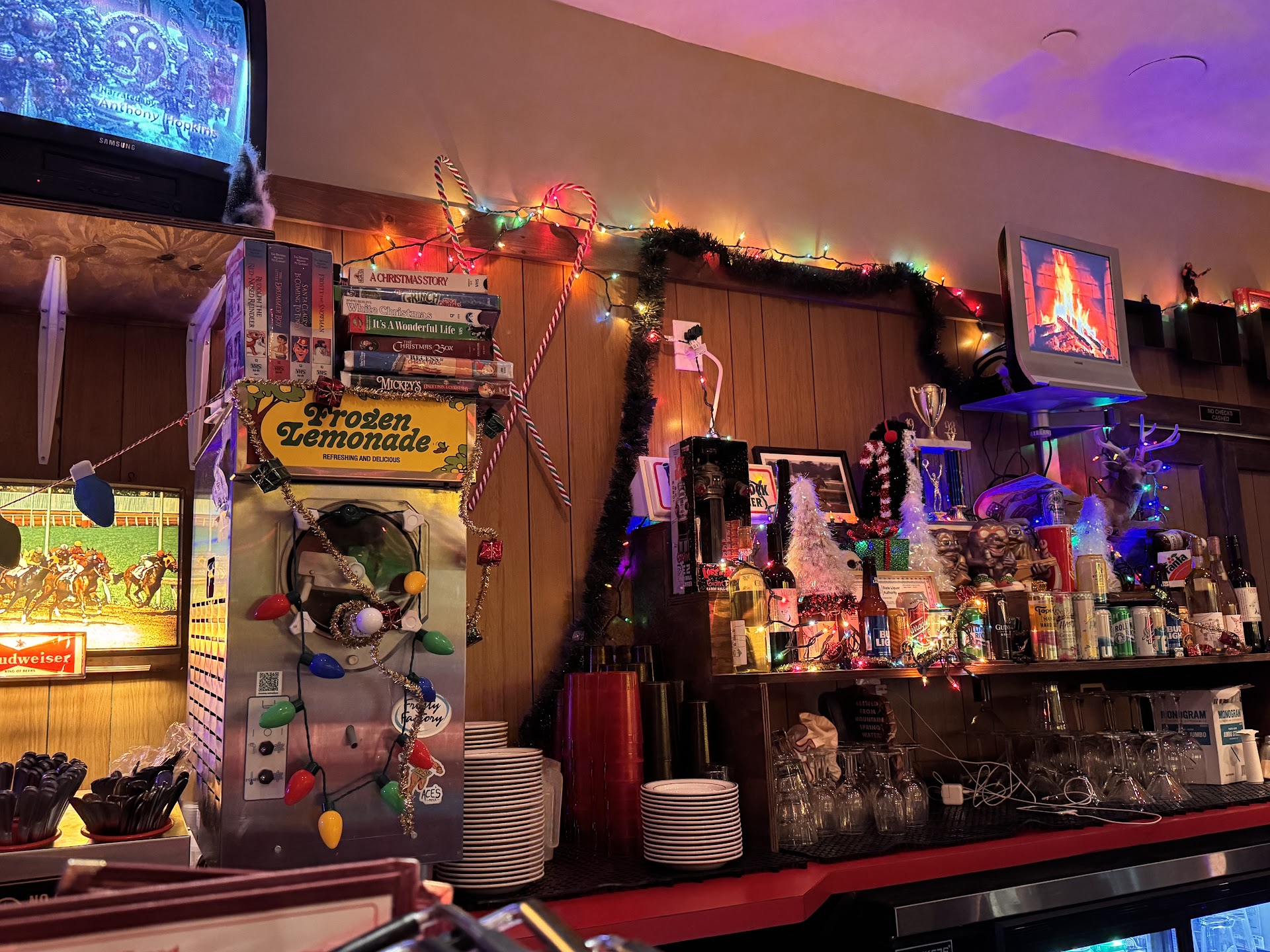 Read morei had a BLAST dining here!! The christmas decor is incredible, they had 3 old TVS going and one was silently playing The Grinch. They include a 18% service fee so I didnât have to tip and my pizza was incredible. I read a book and didnât feel rushed even though I was eating midday during the busiest holiday week of the year. I insisted on sitting at a table and not the counter so I could look at the decor and they (slightly grudgingly) accommodated me. I also asked for hand sanitizer and they had great smelling hand sanitizer. I got the personal Veggie Pizza and it came with a hot pepper on the side which was delicious as well- and cheap only 12 dollars and super filling. The cheese is just 8 for a whole personal pizza! Great spot. I would go back there with someone else who loves vintage things just for fun. Curious to see the other seasonal decor. They even had a Viewmaster by...