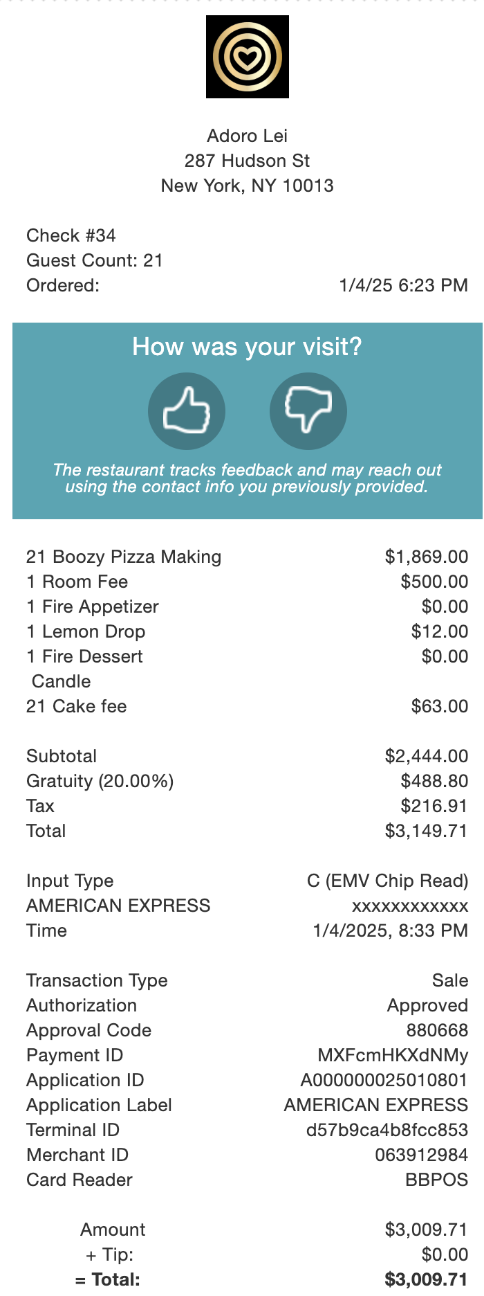 Its been hours now and I have not heard back from them. They are completely unprofessional and ruined what was supposed to be a celebration. It was extremely hard to find another restaurant who was willing to take a big party in such short notice and it was all thanks to the unprofessionalism from the staff at Adoro Lei.