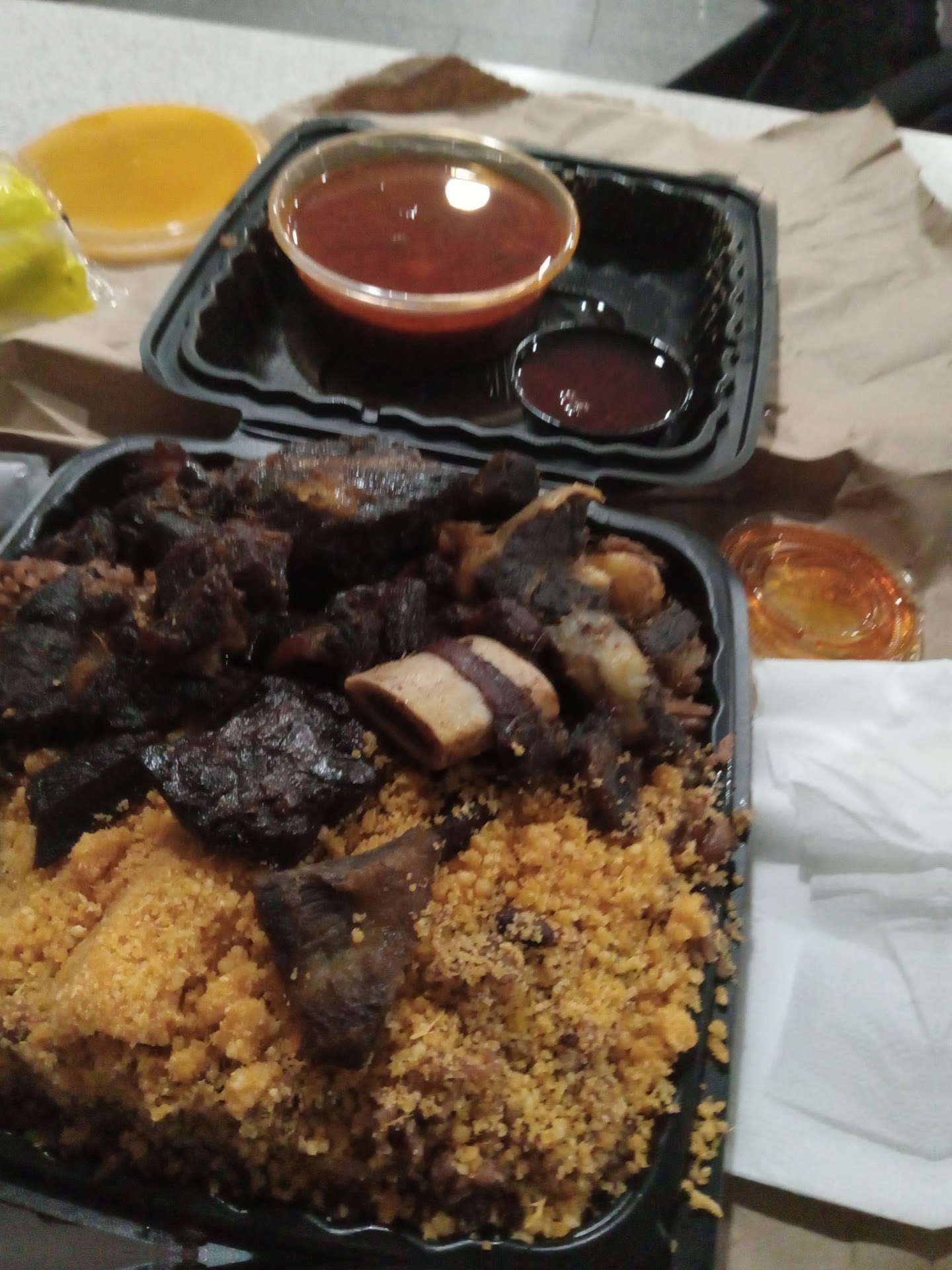 Read moreFirst & foremost the nastiest of attitudes goes to the big dark-skinned lady that serviced me & was in the back talking in her native tongue after a miscommunication with me today. I asked for Banku soup she had the lowest tone when responding so I had to keep saying I couldnât hear her. She asked me with what I wanted it with (Iâm assuming it automatically comes with fufu as shown on the dash because what do you eat Banku soup with??) My point exactly. Mind you I still couldn't hear her, so she and I brushed it off. So, she got mad when I asked her to check out if she could add it in. She gave me two fufu but one tasted sour and was hard. Hope I do not get sick or receive food poisoning from this fufu.