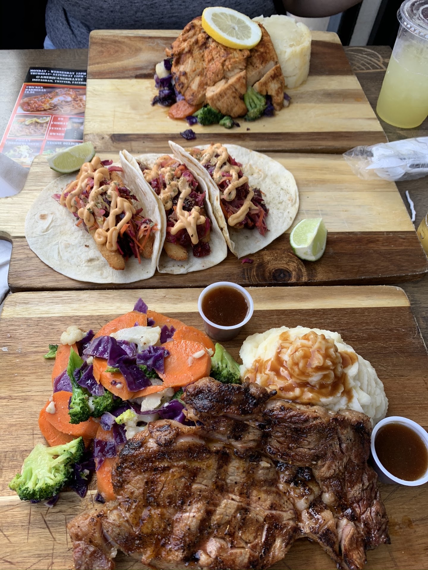 Read moreFirst things first, I’m pretty excited about this place because it’s not your typical mcdonalds, wendys and boring fast food. Everythings freshly made! Staff was nice, owner is an awesome guy really friendly. Me and my boyfriend went in here for lunch and he got tenders wt fries and I got a philly cheese steak wt mozzarella and a side of fries. Really enjoyed it onlllly thing I didnt like was that they add lettuce and tomato to the philly cheese steak😅 next time i’ll ask for that off but other then that we deff will be back! Food was great and I love the boxes it comes in also the fries are fresh cut potatoes which makes it better. Hope this places takes off it seems like the chill spot for the summer👍🏻 Good luck guys! (Check...