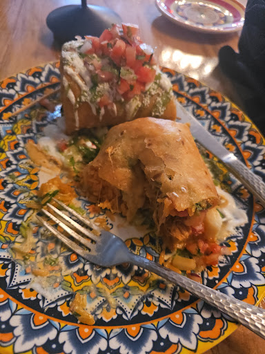 Read moreUpon entering there was a sign in front stating the hours of happy hour. I love a good happy hour from time to time but i didn't get a drink. The atmosphere was nice and relaxing. Easy to talk while you eat. I ordered a passion fruit drink to start which was refreshing. I wish I had ordered a appetizer because my food took a while. I was hungry lol. Anyway I ordered a chicken tika chimichanga. It was nice and hot but it didn't have enough seasoning to my liking. The chicken shreds were good but the bigger pieces inside weren't edible. I had to spit it out. So that disappointed me. But overall I enjoyed the atmosphere which allowed me to enjoy my lunch time...