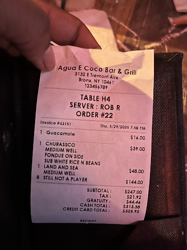 Don’t come here unless you want to be cheated. Honestly they not about having loyal customers more like all about profit. Lets start with the appetizer had the guacamole and it had something else in it that took that taste guacamole taste away could be too much oil. Was not flavored only in some parts not every bite. Me and my wife ordered steak asked for medium well and they burnt it not juicy at all. I ordered surf and turf and the shrimp was cold all 4 of them but I was starving so I still ate because at end of the day was cooked but that was horrible. Now to the part where they taking the money. The drinks are $18 a drink but they are serving juice. Ain’t no way that I order a drink that has Hennessy inside and the drink is still yellow and I drink so I can taste that no alcohol is inside. We complain so much and the server did what he can do but at this point I truly believe the bartender was told to do the old trick that you add liquor to the more drinks they buy. We order 8 drinks in total and on the very last drink was the color changed smh. We looked up this spot to watch the game so of course I didn’t want to leave because it was all about my team but they don’t care about nothing but money and you can tell. The server was very nice again and sad that he has to work the way he did if they not going to provide him with what the customers asked for. All who follow my post know that I do not lie and I guess you will have to see for yourself. Hopefully after this post things will change but no way $18 should be paid for a drink that’s 99% juice until you order more. Receipt don’t like 8 drinks and still walked out...