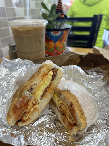 Read moreThe food service and prices are great. The atmosphere on the other hand. Well this is not a coffee shop where you go and drink coffee for for days or hours and set up your computer like in a Starbucks and just chill out for the work from. It's pretty bare in terms of the furnishings. So the atmosphere I've given it a reading of three out of five. Everything else is five star. This coffee shop is a little hidden away. This is especially true now as there were sidewalk sheds or bridges in front of it. There's some seating, four tables, total seating for about 8 to 10. To fried eggs bacon cheddar on a butter toasted bagel. Very simple food and very well done by these folks. As Arnold Schwarzenegger once...
