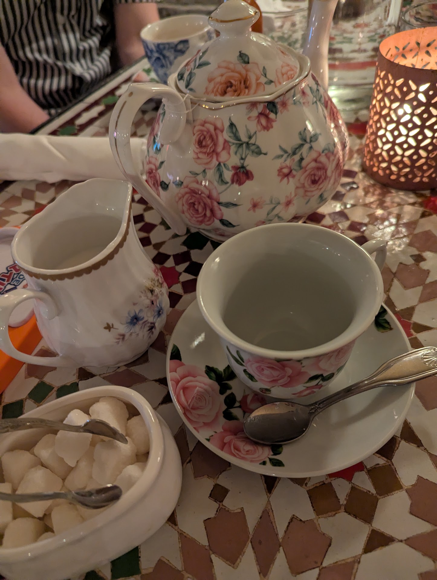 When they brought out the teapot along with a milk jug and a sugar jar, I couldn't help but wonder—who drinks Japanese green tea with milk and sugar?!