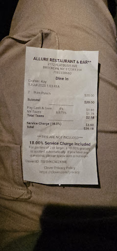 Ā Ā Ā Read moreMe and my friends decided to check out allure after finding it on instagram. It was promoted for $10 drinks hookah and food. When we arrived the place was empty. The bartender and waitress were so sweet and had great customer service. The place was a vibe the music was good, weāre ordering drinks and hookah all throughout the night. The problems started when the owner came in. First off he approached our waitress while we was ordering and reprimanded her for something pulling her away from our table mid order. So unprofessional. Then he proceeded to approach our table while we still had full drinks and hookah and ask are we leaving any time soon. Meanwhile my friend had just ordered food and we had ordered another round of drinks. When my friend asked why he proceeded to state im just asking a question sweetie. It was clear at this point he overbooked tables due to the place starting to get packed and felt like we were there to long so he was rushing us even though we were still spending money. One of my friends politely went to the owner and asked why we was being rushed although we was still ordering. He proceeded to say well yall had 90 minutes( we were never told about a seating lmit) then he said if this was a white establishment yall would of left. After this we did not hesitate to When we received out bill it was almost $400 there were a few errors which Brittany and the bartender quickly fixed. they promote $10 drinks but nothing on the drink menu is $10 you have to ask them what drinks you can have for $10 which was never explained to us. I believe this place has potential and we were really enjoying ourselves. But the owner is so rude, unapproachable and unprofessional i will never return and spend...