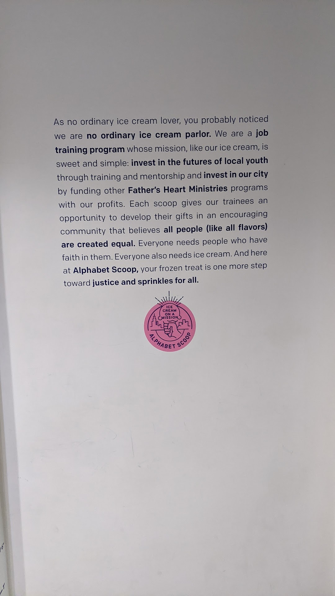 They're not just any old ice cream. They're a charity organization, working as part of the nearby church. The provide food for the homeless on the weekends. They employ young adolescents from the poor areas in the lower east side, kids who are at a constant risk of ending up on the street, and who are sometimes the only breadwinners for their family. They give them a place to work and stay out of trouble, a salary, and a fun, not to mention sweet, environment to provide them with positive influence. In short, they're doing amazing work, one that all food providers should learn from.