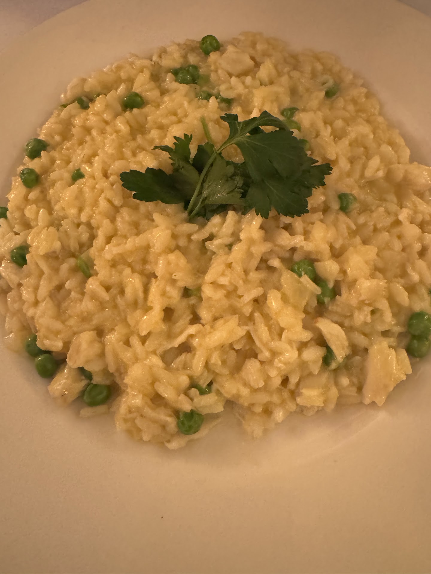 THE risotto with crab and peas was so so. So so risotto is kind of sad. Even I could have stirred up a better concoction.