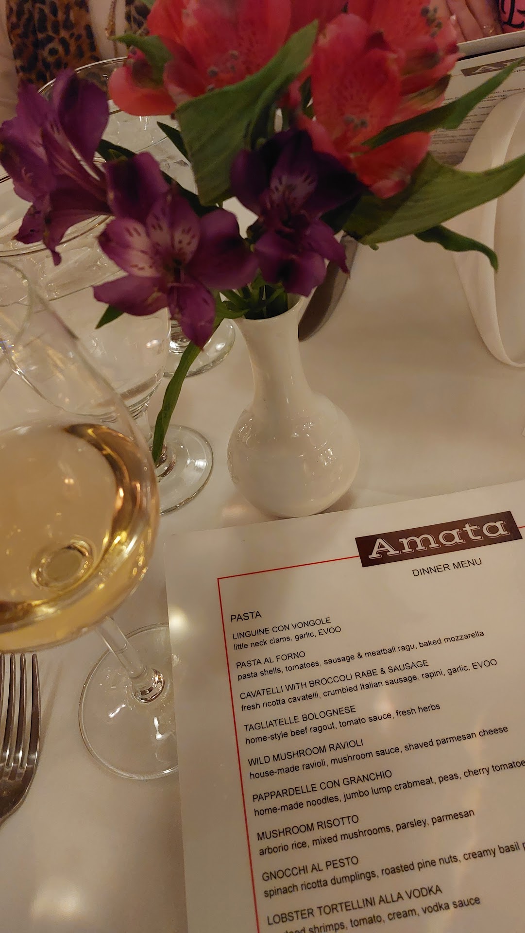 Read moreWe joined our cousin Todd Stein (who is running for district leader), he recommended Amata....excellent service & the food was impeccable 👌! We were served promptly and catered to every minute during our visit. Gnocchi with pesto, lobster 🦞 tortellini with vodka sauce, Wow! Baked calms, fried Calamari, steak cooked perfectly, and much more. Parked right out front. Not rushed at all. Pleasantly greeted and overseen throughout the evening by owner Christopher. Ambiance & atomosphere was perfect!Thank you for a wonderful dining experience. We will be sure to visit...