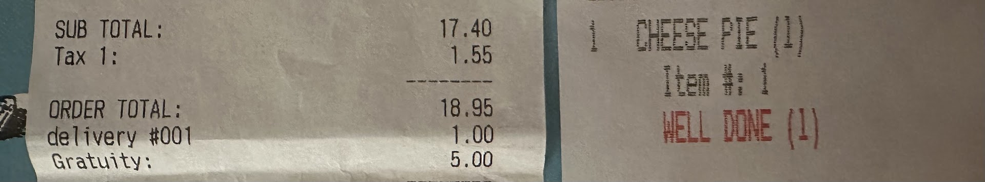 Read moreI usually order from here on a regular basis. Nothing crazy, just either one of their large pies plain, pepperoni, buffalo, etc. Their pies are usually pretty good. In fact, probably one of the better pies around my area. However recently they dont seem to be listening to their customers. Whenever I order a pie, I order it well done… always. But the last few months, the pies never come well done even though it is clearly written on the receipt in bold red letters. I have held off, thinking this would correct itself, but unfortunately it hasn’t. If one is going to pay $20.00 for a plain pie, or any pie, listen to your customers and make the pie the way they request. Not just rush it out the door because you are busy. And while I am talking about the receipt, what’s with the $1.00 delivery charge? Not sure why I never noticed it before and I know it’s only a dollar, but that’s not the point. Covid is over bro, stop nickel and diming your customers. The place is always packed and it’s always a long wait for a pie, so I think you can afford to pay your employees enough without tacking on an extra dollar to everyone’s delivery. I’d rather pay more for the food than see a extra delivery charge on my bill. At least make me feel a little bit like I’m not getting screwed. Next time I’ll just deduct it from the drivers tip. I’m sure the drivers will...