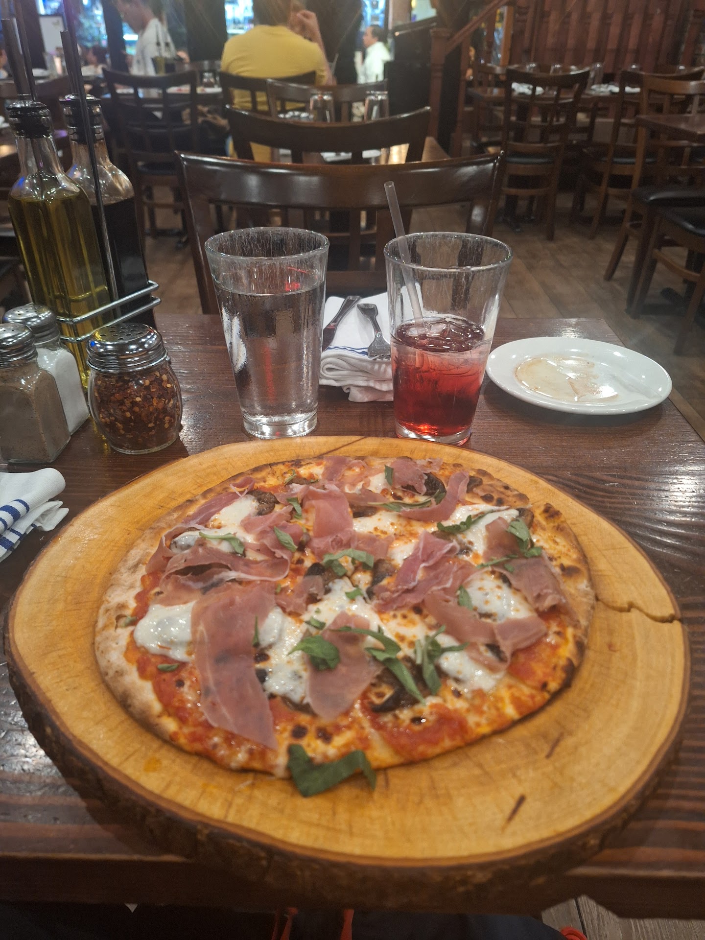 first, we ordered the rice balls which were advertised to have sweet sausage and cheese inside of them. i work as a chef and i can absolutely tell when something came straight out of a freezer, and these absolutely did. they tasted freezer burnt and the flavor of the sausage and cheese was completely missing. four very small frozen rice balls for $16 was probably the biggest letdown of the experience.