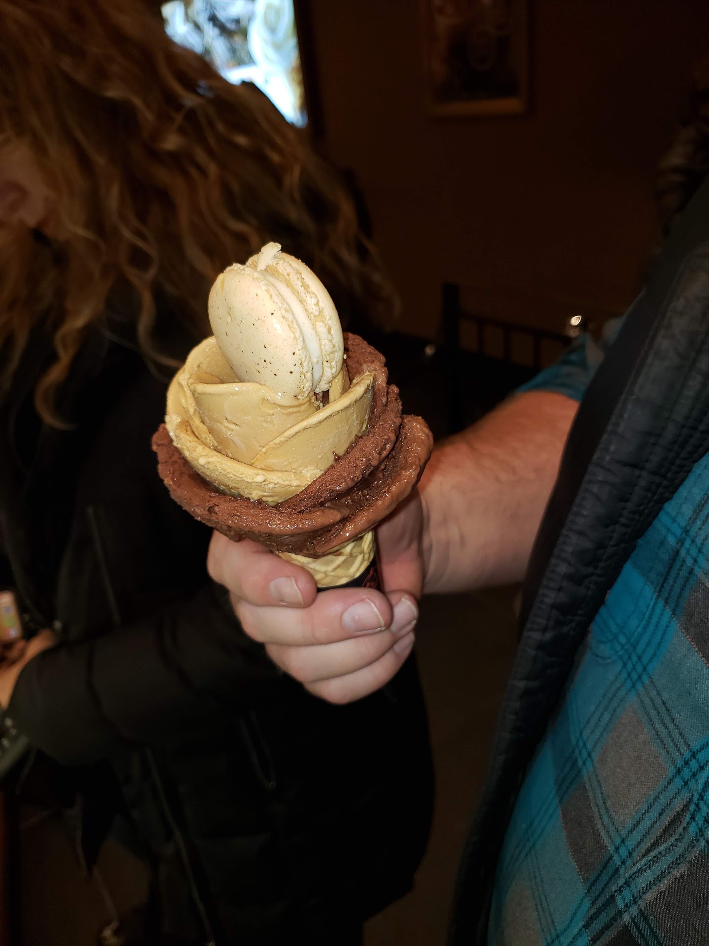 The atmosphere is so peaceful and relaxing. And get this... in the winter time you can have tea or hot chocolate with your ice cream! The service is amazing, and very patient with customers who can't seem to make up their minds of what it is exactly that they're looking for. (me LOL) And my gosh how could I almost forget about the best part! The macaroon on top! By far the best macaroons I've tasted, pistachio is my favorite flavor! (it's made with gelato)