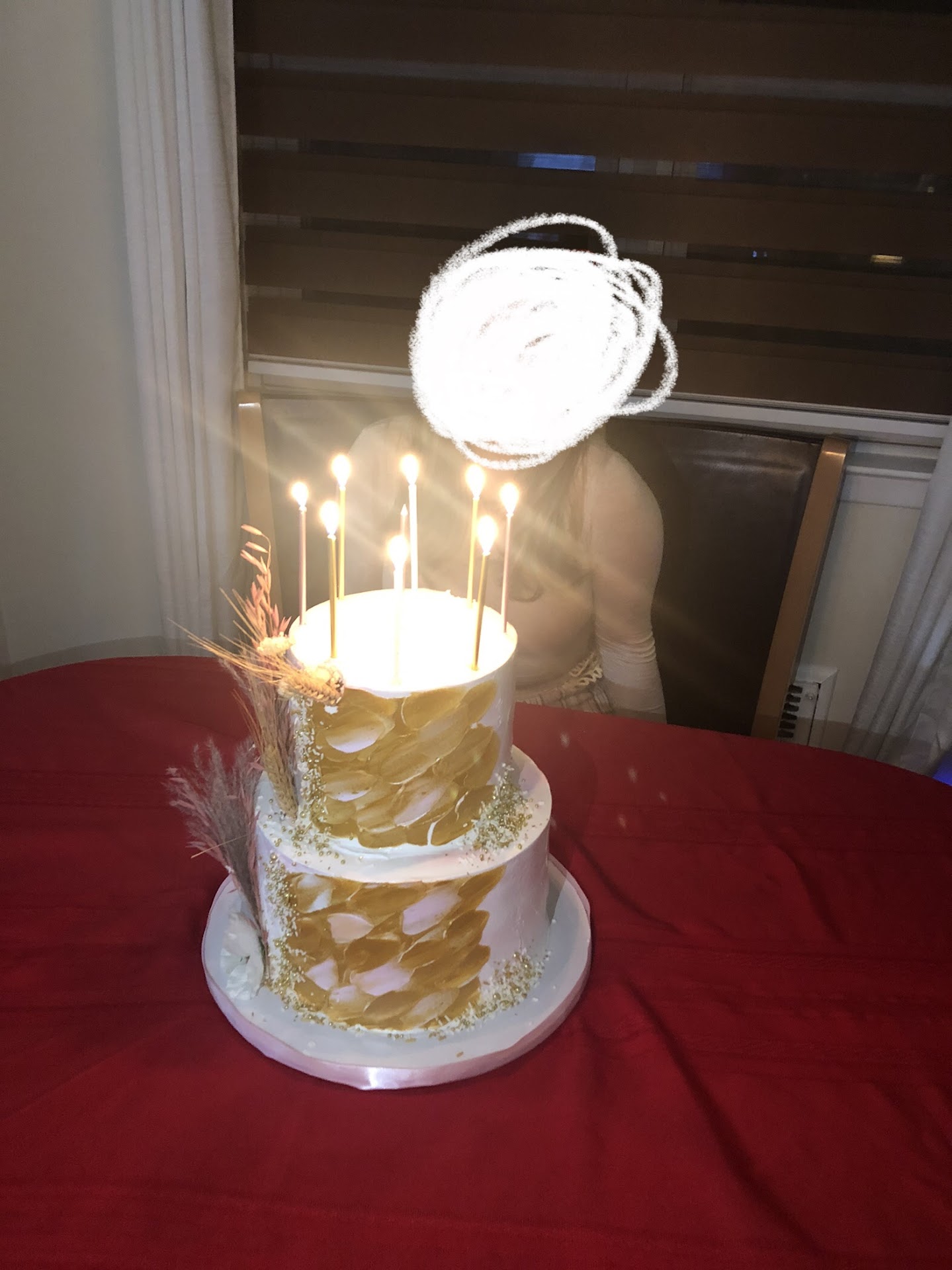 The employee smelled the cake and said the cake smells like paint because the cake is "2 weeks old." But the paint smell was noticed on the day of the wedding and multiple guests noticed it too. We told her we couldn't just cancel our honeymoon and bring a sample of the cake to Angela the day after the wedding. We had to wait after the honeymoon.