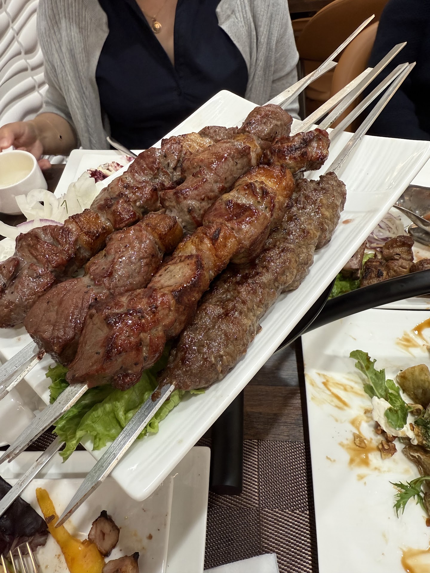 Read moreThe worst experience in Uzbeki restaurant so far. And I've been in every single one in Brooklyn. It looked promising after renovation - stylish, neat and modern. But that all changed in about half an hour. I couldn't tell you how good is the kebab as I had to take it to go and reheat at home. As I ordered kebabs, the ambiance music was turned off and shockingly loud Uzbek music was turned on. So loud, - the table was vibrating. Then the light was turned off and the modern restaurant turned into Uzbek night club in the village. People in the booth were celebrating something and that was their request I assume. Noone cared for other customers left to eat in the darkness and unable to carry conversation amid dancing women. It still didn't even occurred to the waiter that it is disturbing when I got up and asked my still grilling food to be packed and asked for check. I guess some guest are important and others not.