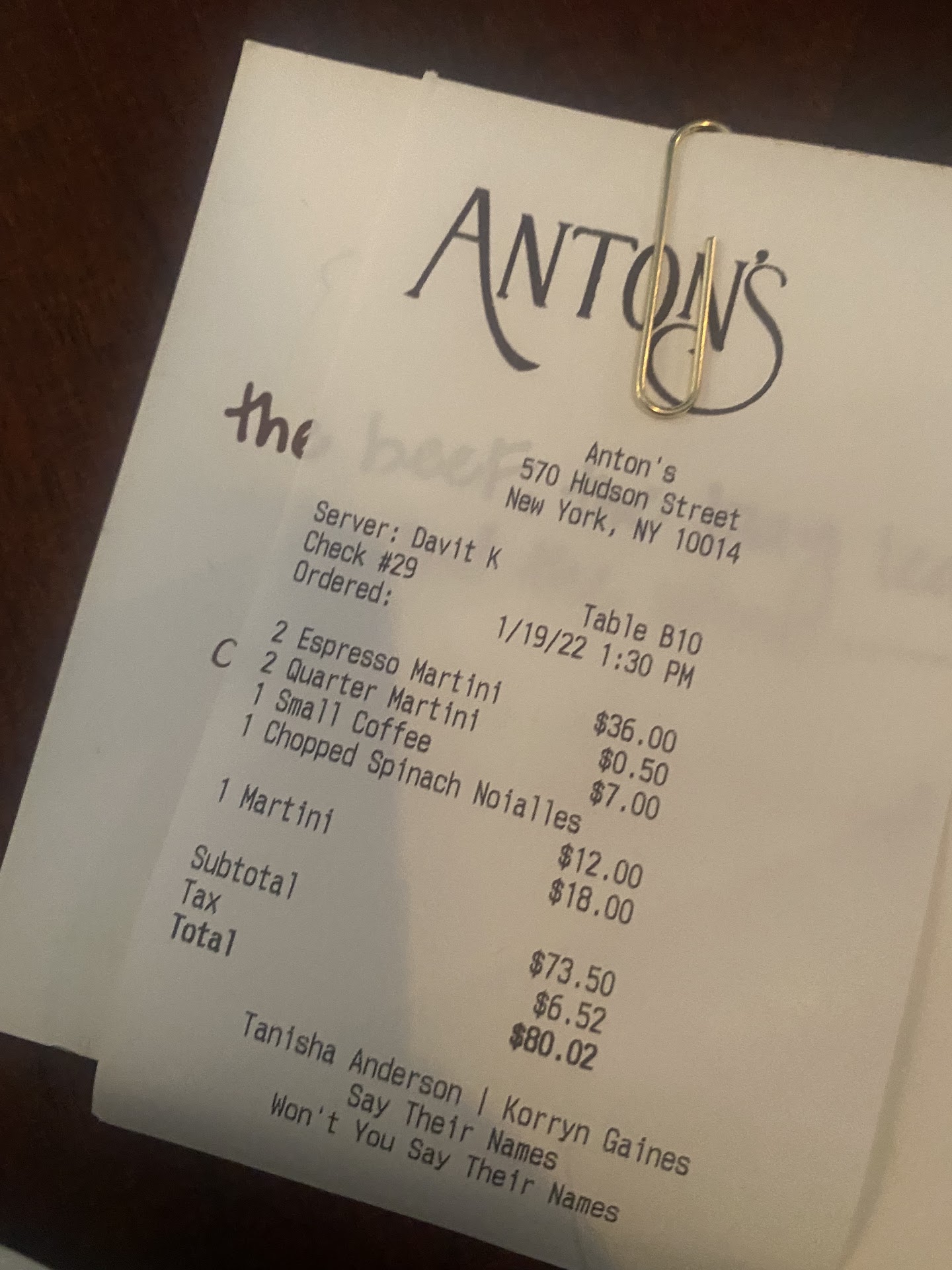 Read moreHonestly the bartender Davit K really put a bad taste in my mouth. A friend and I went in for the 25 cents martini/manhattan lunch special like everyone else dining. My friend ordered an espresso martini which wasn't a part of the special, (we knew that) but felt the need to announce that it wasn't “complementary.” I understand that the drinks are basically free but I don't need you to announce the price of every item dropped in front of me. The verbiage he used was quite strange, why would anyone say “complimentary” when there's still being money spent. After two martinis the bartender completely ignored us and refilled everyone's drinks around us. At one point he even came over and requested that we order food to continue to sit at the bar. At 2:30 when I requested another drink he told me it would be full price (the special ends at 3pm) Nowhere does it say that there's a two-drink minimum but we went with it. Being someone who works in hospitality I think this is completely unacceptable, especially when he was handling all glassware by the rim. Moving forward I think it's very important that the company and staff are on the same page to make sure every guest receives the best...