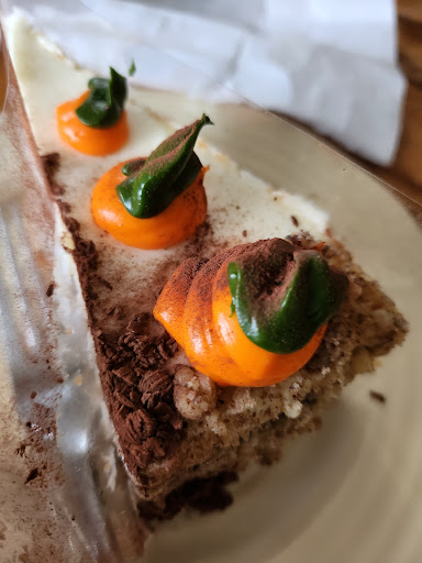 The carrot cake was delicious. Possibly the best carrot cake I've had. It was moist with a lot of walnuts and raisins in each bite with the tangy cream cheese frosting. My dad tried their tiramisu and said it was delicious. The cake was soft and fluffy and he enjoyed every bite.