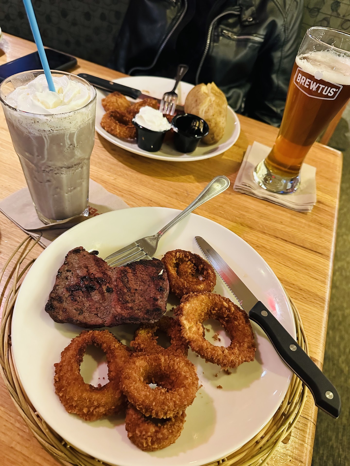 -The waiter/server was very good, but he was covering so many tables it looked like he was covering half the restaurant? He was taking orders, serving, and cleaning up, which I thought was too much for a single person and I felt like he was not available to us as much because he was so busy and this negatively affected my experience. -The food was - terrible. The steak was the worst I have had in my life. The wings were mediocre at best. The shrimp and onion rings tasted like oil and that is it. The fries were good however. The strawberry as well as the Oreo milkshakes were “ok.” The piña colada tastes so artificial and clearly it was poured from a machine. The cole slaw was fine.