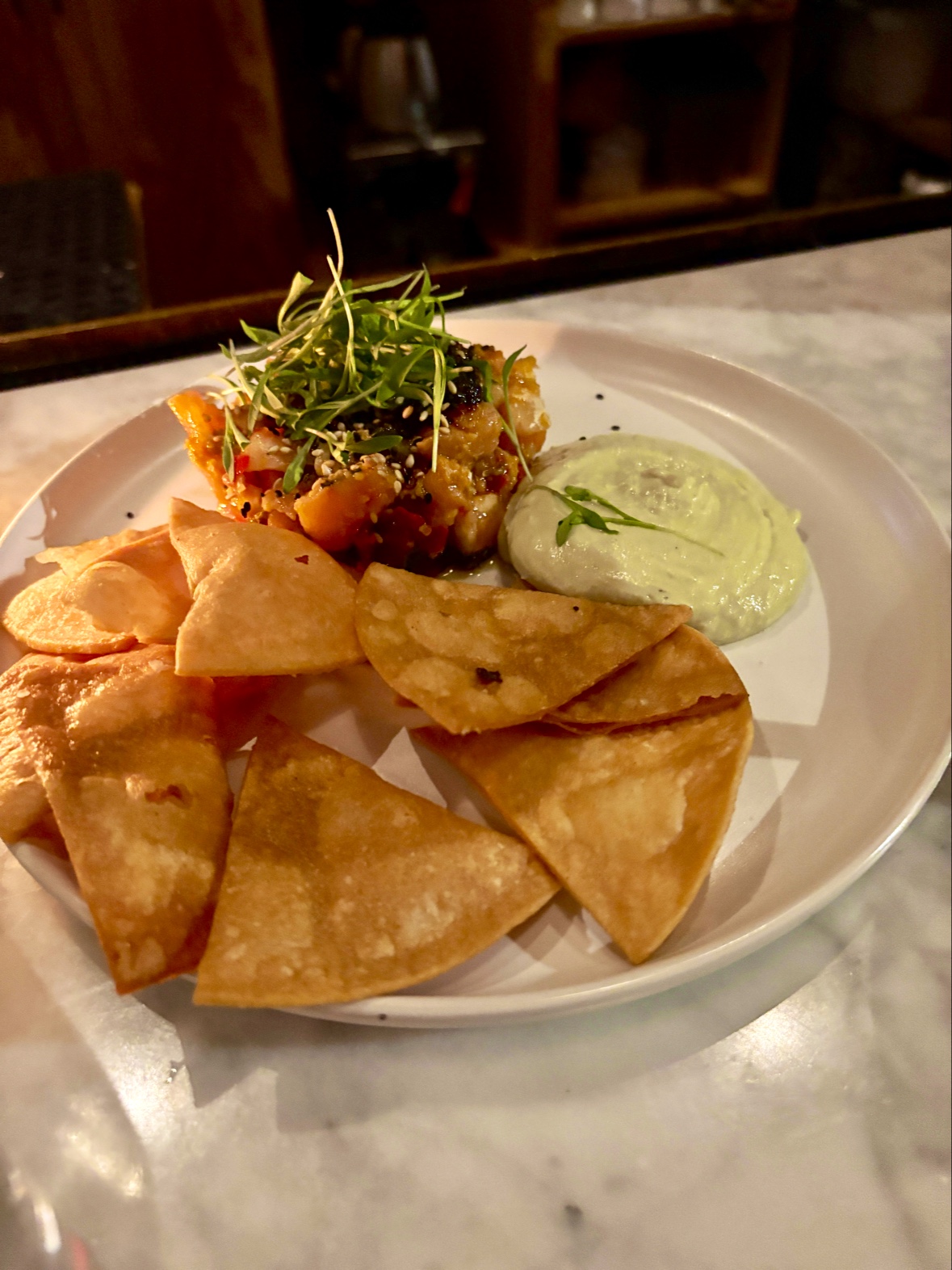 The perfect evening. My boyfriend and I were looking to celebrate our 5 year anniversary, we’ve enjoyed their brunch so we decided to stop in on a cold night for dinner. We sat at the bar. We ordered the salmon tartare to start - it was phenomenal - so many flavors and the green sauce has some wasabi in it, the black on top are toasted sesame I think which added a lot of flavor and crunch - I could have eaten one whole serving myself for dinner and be content. I asked them to space out the food which they did very nicely. Next we tried the shrimp - buttery and with the green salsa delicious and cooked to perfection. Next we balled out and couldn’t decide between the lamb shank and the prime sirloin - so we ordered both. I would go back for both of them, they were well balanced and delicious. That lamb shank fell apart in my mouth, with the savory sauce and the smooth mashed potatoes under it. I will be thinking about that meal for a long time.