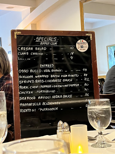 After the terrible fire in the Bruson Building, Armando's closed. About a month ago, I heard they were opening again in what was La Trieste on Northern Boulevard. I'd also heard that they hired a new chef and had revamped the menu.