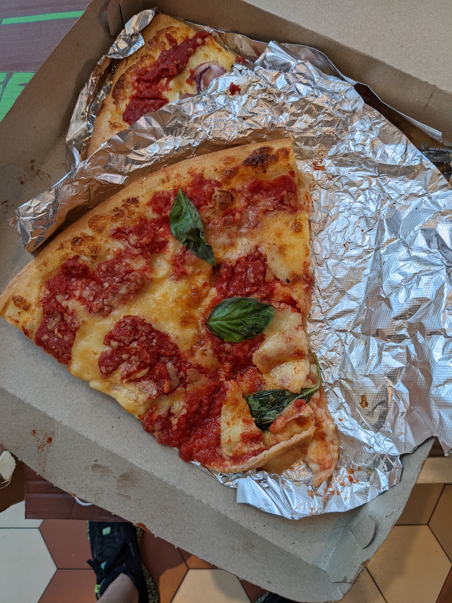 Read moreI was concerned after seeing other reviews, but fortunately did not get food poison. Relatively cheaper compared to other brands nearby. We arrived early so there were no large crowds. Service was quick. Ordered artichokes pizza and Staten Island pizza at the kiosk and waited under 10 min to get the pizza heated up. The artichoke pizza was good, crust was thick and crispy, and the cheese was so rich and creamy. Unfortunately, the guy put one pizza on top of the other in one box, making the artichokes pizzas look a little bit messy. Meatball on the Staten Island pizza made me a little bit skeptical about freshness. Should’ve ordered two artichoke pizzas. I was surprised to find such a low rating for all the foods...