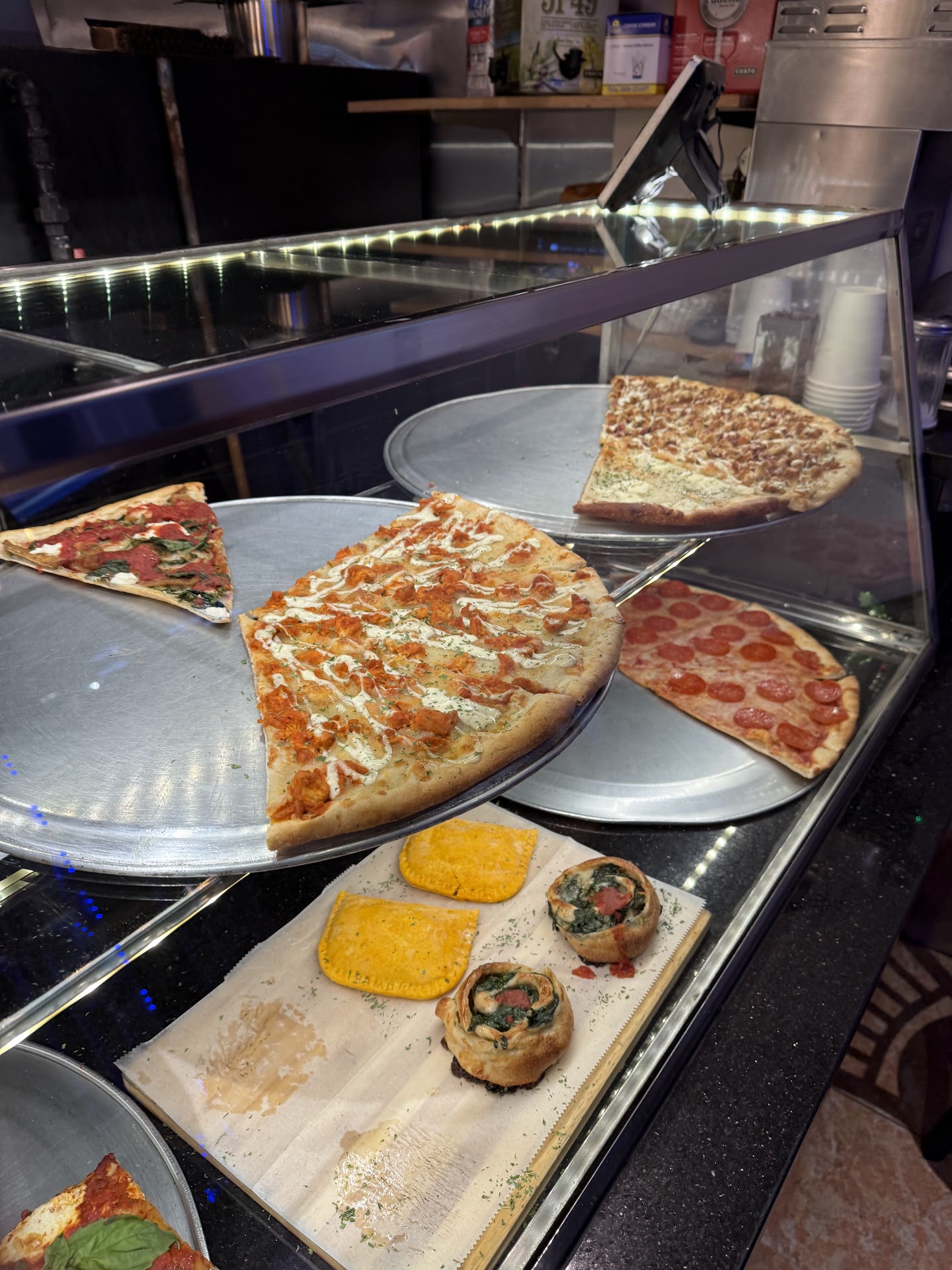 I wish I could give this place a 100 stars. Pizza was out of this world, fresh, beautiful crust and the sauce was just beautiful. Just tried the cheese slices but will definitely be back for more. The place was CLEAN. Restroom, Front area, everything. The guy at the counter was super nice. He was very sweet and greeted me with a smile, I just had 5 bucks on me since I left my wallet in my car. The total came out to $5.45 and I told him to let me go find change in my car or grab my debit card from my car. Without hesitating he said "you owe me 45 cents, have a nice day". I think sometimes when you interact with positive people it makes your day. Will definitely come back to spend more and to obviously return...