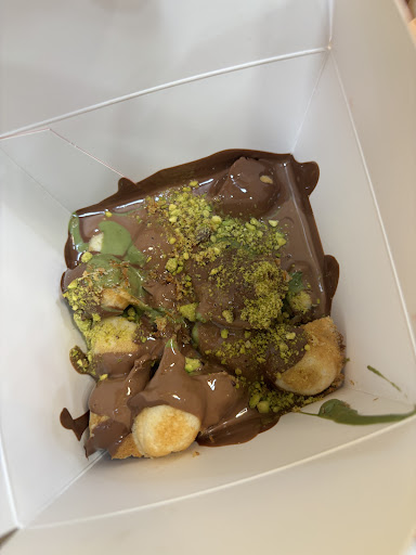 Recommend: Emperor Mango Mix (mango with vanilla ice cream and chocolate sauce) is amazing. Chocolate Puffs (topped with chocolate, pistachio, and lotus sauces) are so yummy! Loved the consistency of the puffs! Dubai Strawberry Cup with kunafa, pistachio, milk chocolate, and a drizzle of pistachio sauce. Love it! Dubai Chocolate Mini Bar is really good.