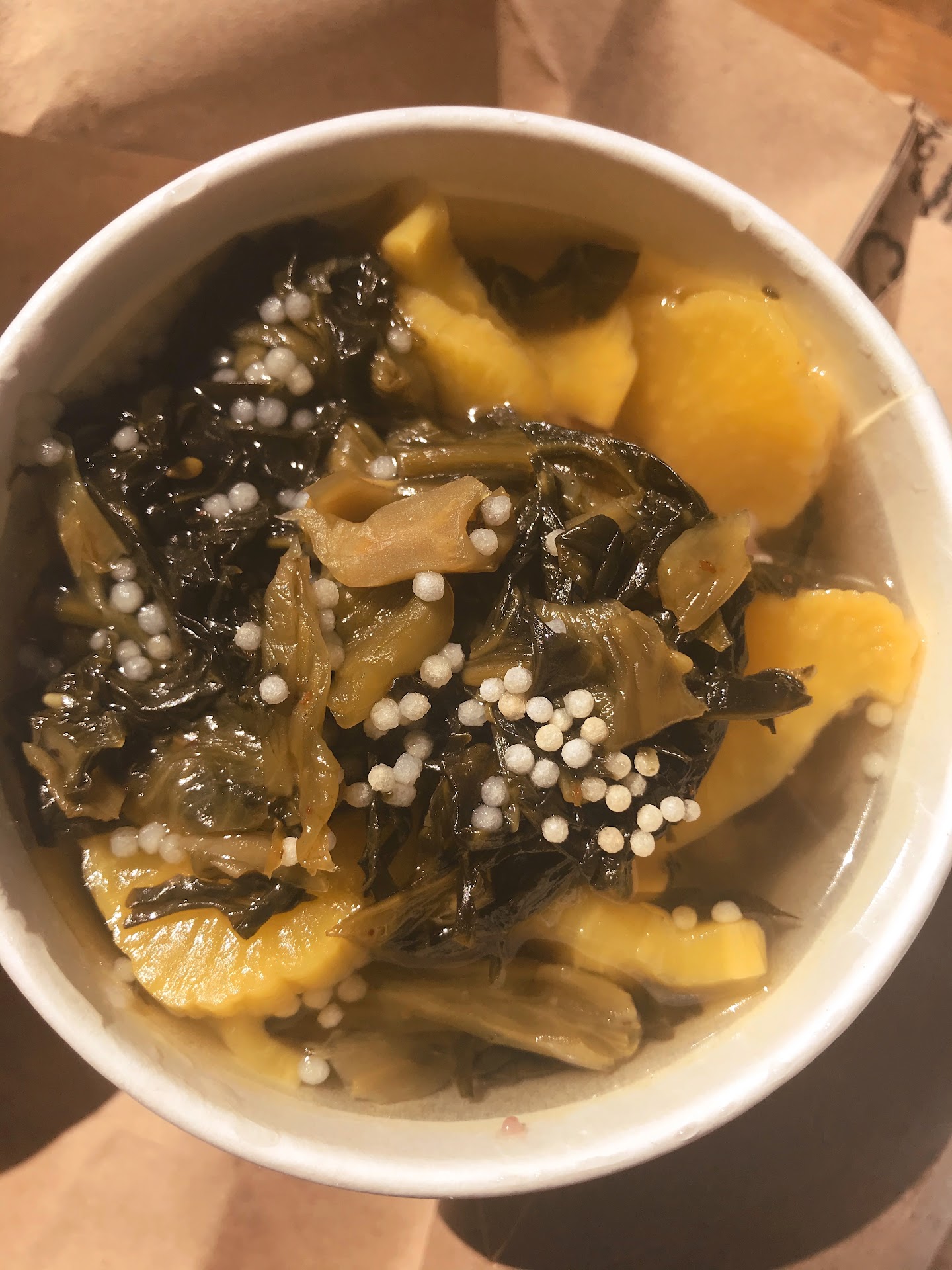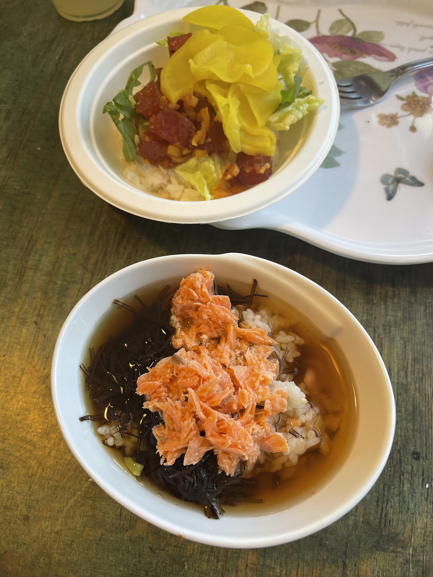 Of her regular menu options, I love her egg salad sandwich, the hibiscus tea + lemonade, & the spicy tuna poke bowl. The pictures I took are from a to go order, but don’t let it fool you. It’s so good!