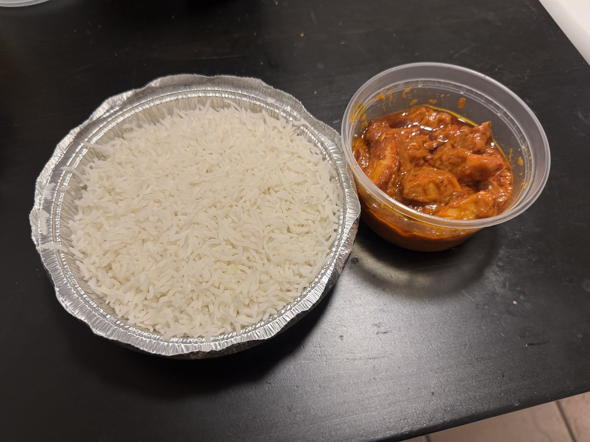Today, my husband went to pick up butter chicken for himself and for our toddler. He said it was a different person behind the counter today. He comes home and opens the bag to this - a container of rice and half a pint of “butter chicken” for $12. HALF A PINT. Pictures don’t do justice for how insultingly little was in the container. Nothing was eaten prior to taking pictures, just moved around with a fork, because we were doubtful this was butter chicken. We have white rice at home. We’re really paying for the Indian food. But HALF a pint??