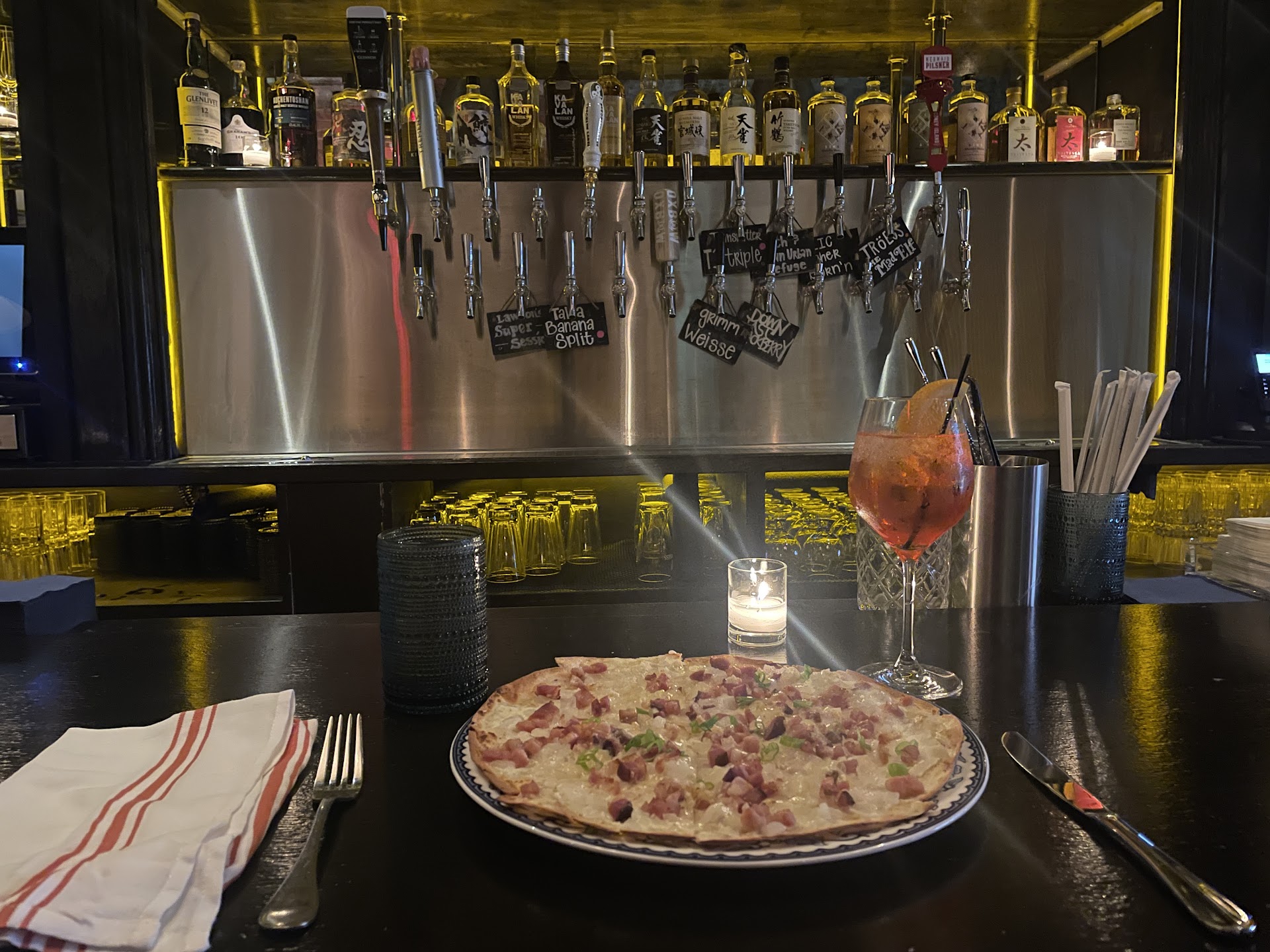 Read moreI've been wanting to come to Aunt Bernie's since it first opened up and I finally had a chance to stop by. So happy I did! My usual to go drink especially in this type of weather is an Aperol spritz so I ordered an Aperol Spritz and it was very tasty, refreshing and just well made. For food, I wanted to try something different so I decided to get the Tarte Flambee Flatbread. I am not a huge fan of bacon so at first, I was a little unsure but when my food came, that savory smell really increased my appetite.The flatbread was so tasty and rich in flavor I didn't want to stop eating it. Also, something that really caught my attention was the atmosphere and ambiance of the place as well as the interior design of the bar itself, the back room is set up very nicely. The service was great, staff was very attentive, friendly and just amazing. I can not wait to come back soon and try more items from the menu! Overall, if you're in the city and looking for an enjoyable place, Aunt Bernie's is your go to place! I highly recommend this place and I recommend the Tarte Flambee Flatbread. You will...