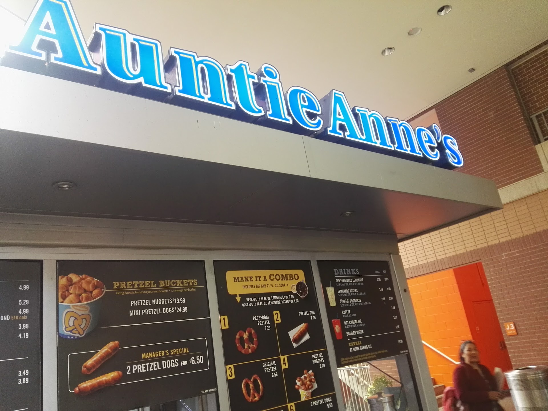 Ā Ā Ā Read moreBeware of this place, they overcharge you! I was at this location a few days ago to redeem a T Mobile Tuesdays offer where if you buy any drink, you get a free pretzel. I ordered the bottled water, which was listed at $0.89, but was told it was an "old" sign and it now cost $1.50. I reluctantly paid this "new" price, coming out to $1.63 after tax, and got the water and "free" pretzel. I just checked my credit card online and turns out I was charged $3.04! I'm contacting both Auntie Anne's and TMobile as while we're not talking about a lot of money (and the pretzel was tasty) it's...