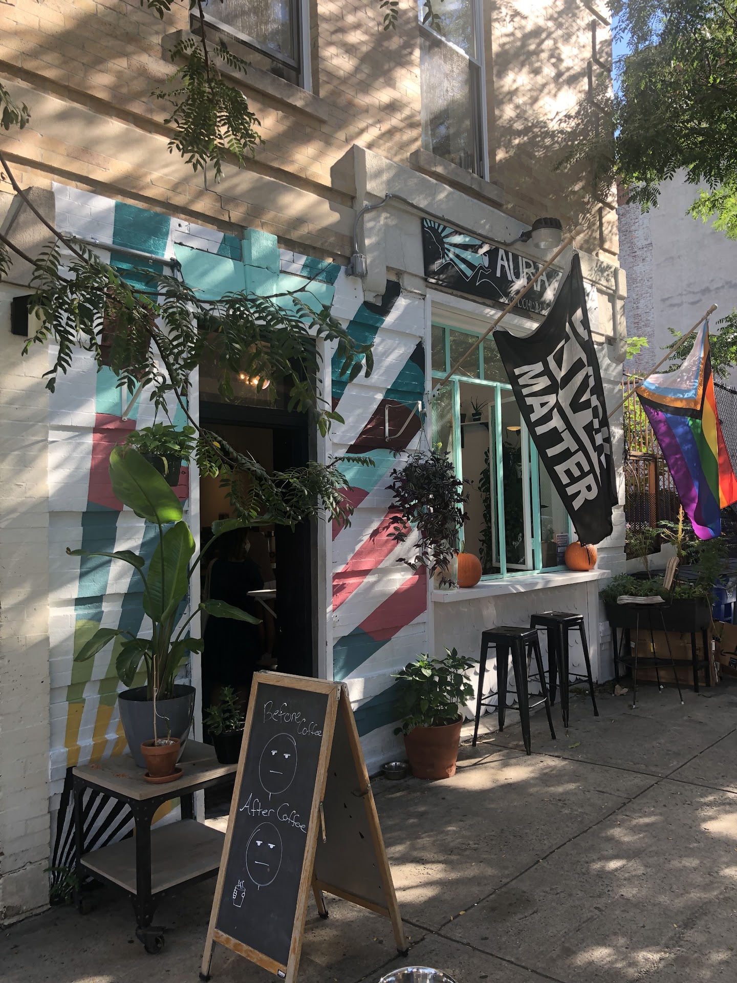 Wonderfully Gay coffee shop. Elicia, the owner, is a shining goddess that’s guaranteed to brighten your day. I tired a decaf latte and was greatly impressed with the bold, fruity flavor of the coffee. She gets it’s all from Boulder, Colorado and it’s delicious. 10/10 bathroom featuring a magnetic wall filled with Polaroid pics and word magnets. Also great smelling soap, don’t miss out on it!