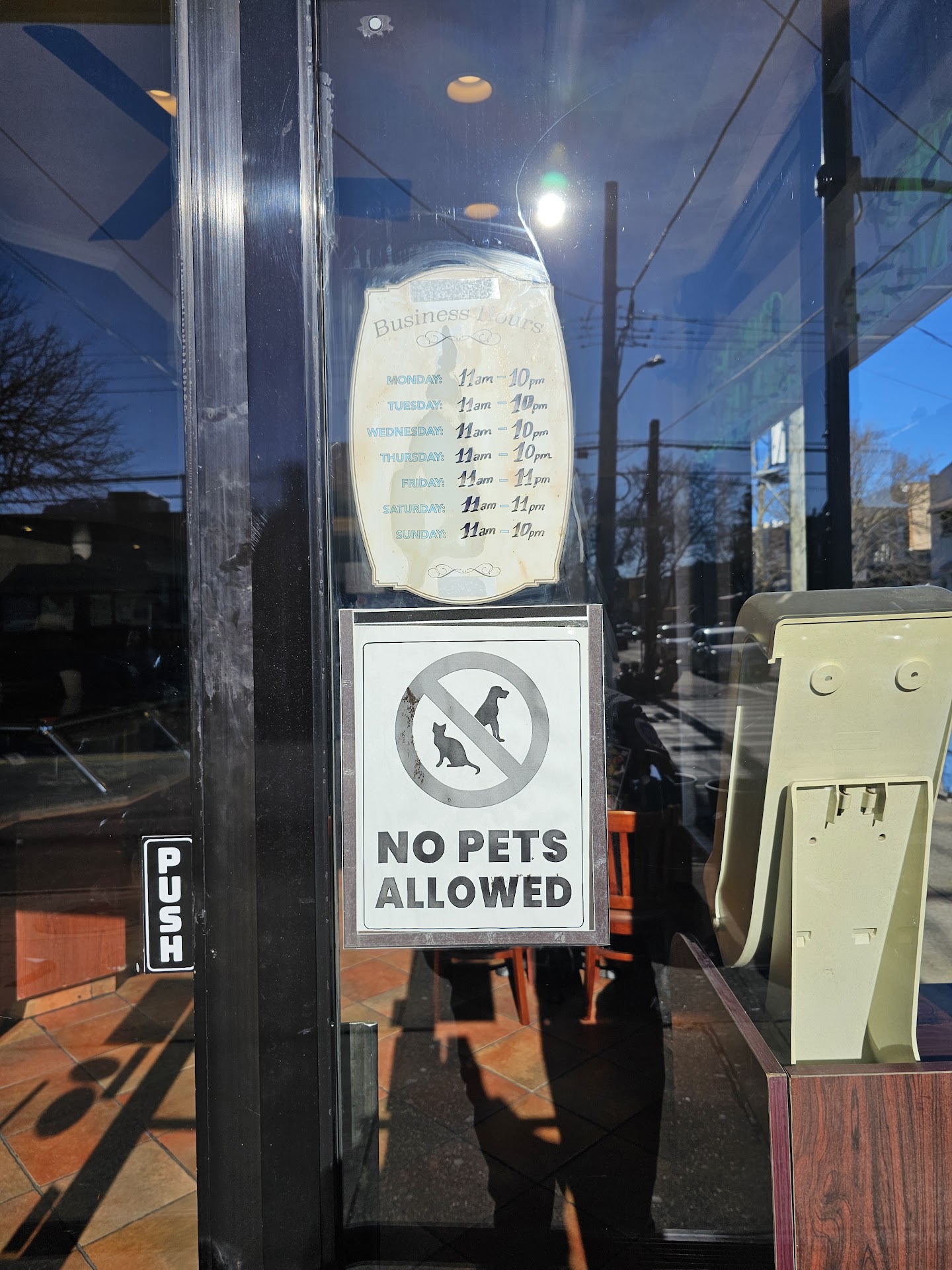 Not a sit-down place. They should remove all of the chairs and tables, and advertise take-out only. That's why I'm rating this as a three-star restaurant.