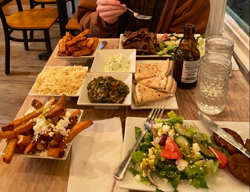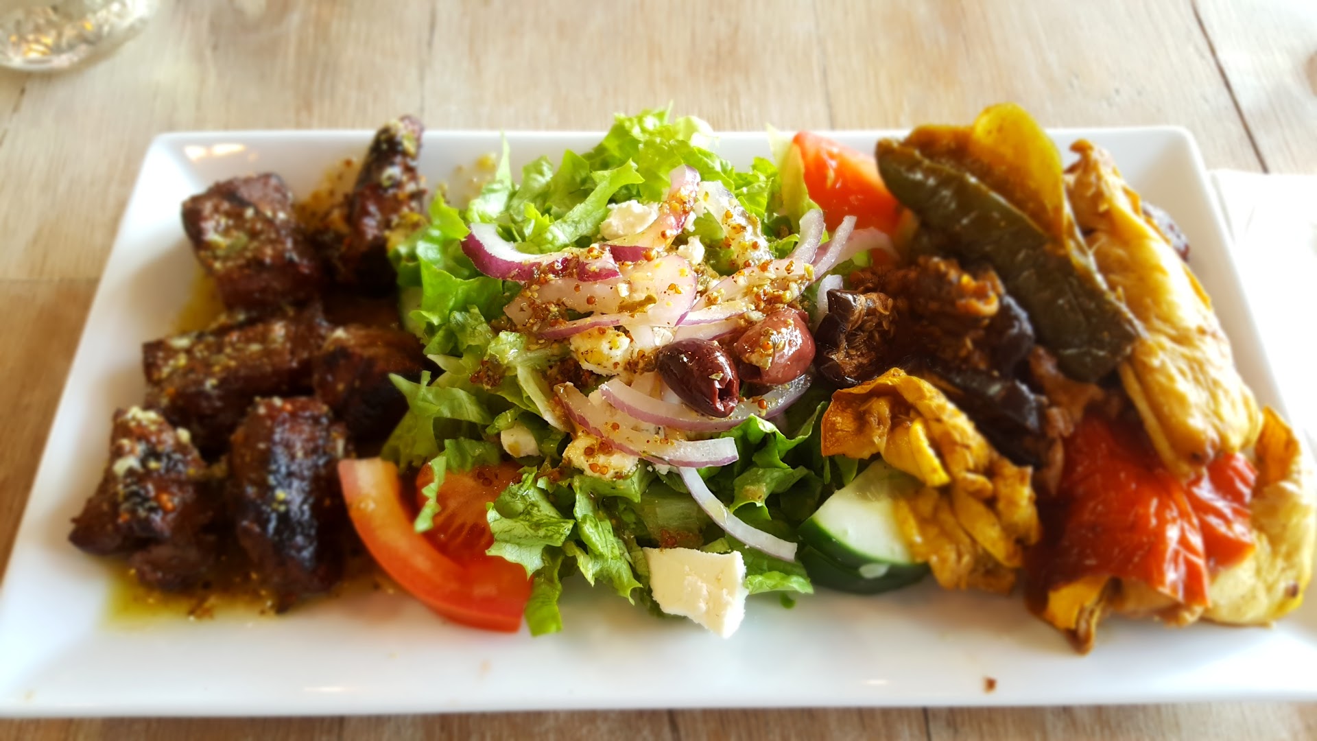 Nice little Greek eatery with mouth watering food. While I enjoyed having my lunch there, the layout of the restaurant and the service was a bit awkward. It's a small place with five tables in the front of the restaurant, we were being seated in the middle and I could hear every conversation from the left and right table. Given the size of room, the hard wall and glass window probably bounced the sound a bit too efficiently. The table by the windows was perhaps a bit too close and therefore the window amplified the customers' conversation and bounced it back to the middle table. That was a bit annoying. Another awkward moment was while we were waiting for our food, there's no complimentary pieces of pita bread or olives to pick on. Last, please fix the door. It's winter time and the wind is strong. It's weird and borderline rude to ask every single customer that enters to slam the door shut. The room gets really cold because of the draft. On the plus side, the food was prepared with care and the result was really high quality delicious food. The wait was a bit long but it's worth it. That brings it back to why it was awkward when there's no complimentary olives or bread...