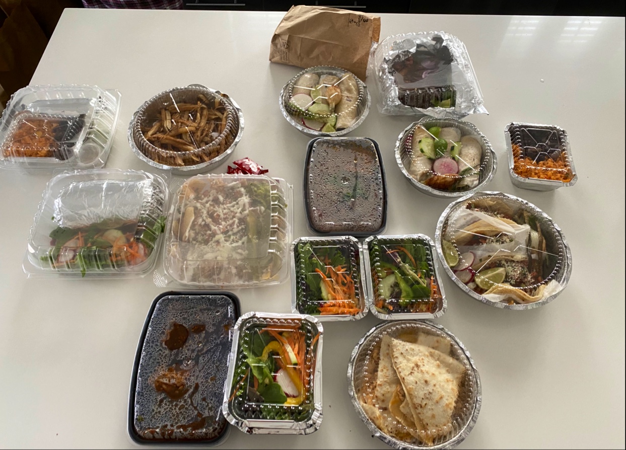 We arrived a bit early for our order pick up and see 3-4 large socially distant tables of families dining in. the staff all hurriedly packed our order as each food item was ready. They triple checked to make sure they didn't forget any of our food. They also gave us free green sauce with our order.