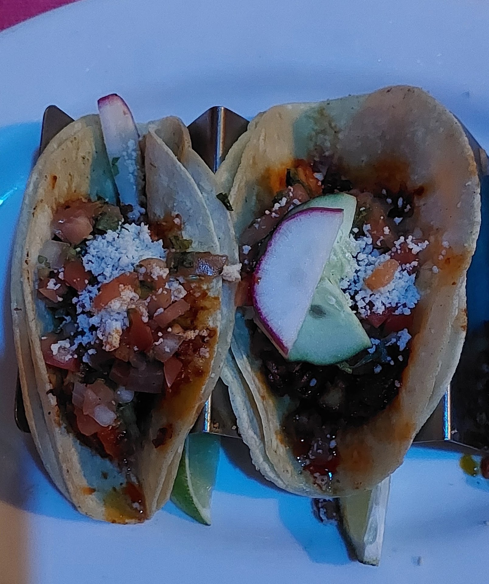 We received our drinks and food in a timely manner and everything tasted great. We shared veggie nacchos, then I ordered the fish tacos and my mother had Shrimp a la Mexicana. My tacos were tasty but O was full from the nachos so I could only finish one. Turns out it was probably a good thing because my lips and throat started to itch after eating the taco. I'm allergic to shrimp and figured there could have been some cross contamination with the fish. However, I never mentioned my allergy to the restaurant (I usually just avoid ordering shrimp and it's fine) so I don't fault them. I'm including it in my review to remind others to inform the restaurant about any food allergies before ordering.