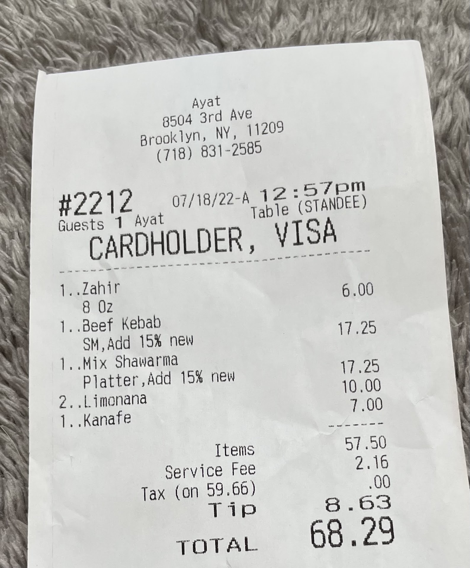 However, although the food is good and their staff friendly, their service is lacking. We dined for lunch (a party of 2) and was the first of 3 tables occupied for lunch service and there was 2 ppl for front of the house. They forgot our limonana until we asked for it. When the app came, they failed to provide small plates until we were almost half way done. The utensils were plastic which was weird but who knows maybe covid? But they also failed to give us pita bread until our entrees came while the other tables received it before their entrees. Their dessert was served to us in a takeout foil container which I don’t understand why but it was good so I didn’t mind. We had lots of leftovers so they did provide (3) takeout containers but failed to give us a bag to take it out with us. I also don’t usually look at my receipt but when I did, I noticed they added a service fee which was whatever but then there was 15% added to our entrees which doesn’t even make sense since the beef kebab was $15 and my mix platter $12 and charged us the same for both…