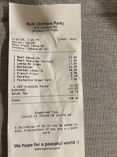 @ayat.nyc Admin took time to communicate with me and offered me a courtesy dinner instead of a refund. In the back and forth exchange, I felt hesitant in the owner's communication to even offer the courtesy dinner. I said I will write a review of this exchange and experience. He later replied that he will keep his promise to offer me the courtesy dinner.