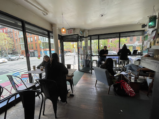 Read moreCharming cafe in the East village. My friend and I had some time to kill before heading to the airport and decided to stop here for breakfast. I ordered a regular latte and an almond croissant. My friend got a caramel latte and a slice of banana bread. Both were delicious! The cafe has several milk and flavoring options for coffee as well as a larger breakfast menu if you want more than a quick snack. The barista who helped us was very kind. He even offered to help charge my friend’s phone behind the counter. There are some tables that are designated only for dining and say something along the lines of “laptop free zone,” but I can’t remember exactly. Another customer came in with their dog to order and then left. I assume this means the cafe is pet friendly. There was a sign in the cafe that said one hour limit for each table so we stayed for almost an hour and then headed on our way. Overall, a calm cafe with a...