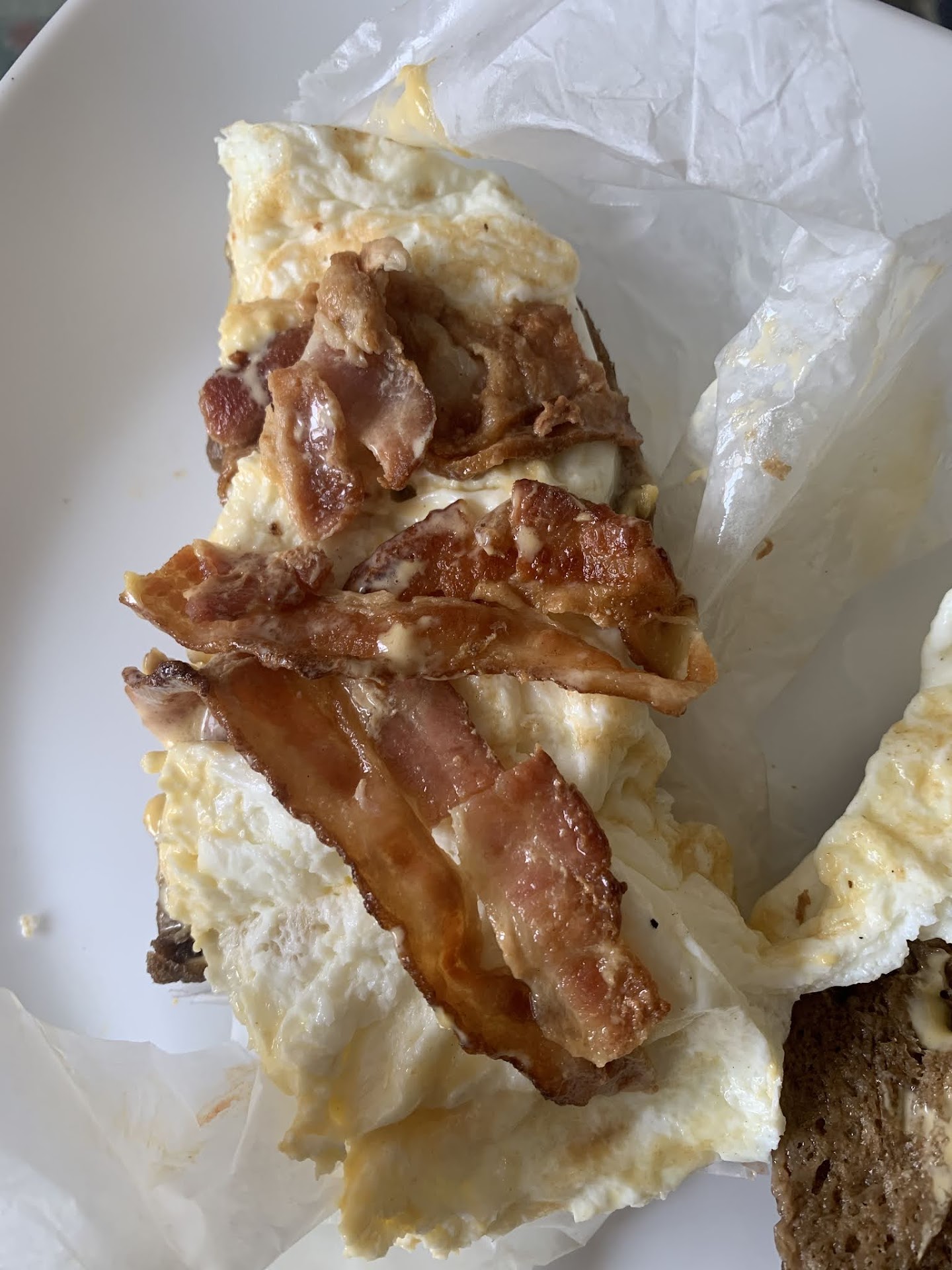 The bacon was tough and tasted old, and the sausage was cold/mushy. They even used to give you two whole sausage links cut in half down the center. Now they've gone full cheapo and only give you one and a half. Ridiculous!