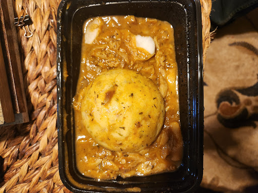 This is a virtual restaurant. Either order online or order at the kiosk station at the location. Pickup is self-service using order details on your phone, scanned at the pickup kiosk, and the order is retrieved from the indicated locker bin. On-site help can be obtained by pressing an intercom/ring doorbell located by the pickup kiosk station. There isn't any parking as there are car repair businesses taking up all possible parking spots. You can take a chance and park in the gas station adjacent to the building or double park in front. The food was decent. Cou-cou with salt fish was lacking on okra but had great flavor. The pudding and souse was on point. Most likely, I wouldn't visit here again as I don't like to scramble and hunt...