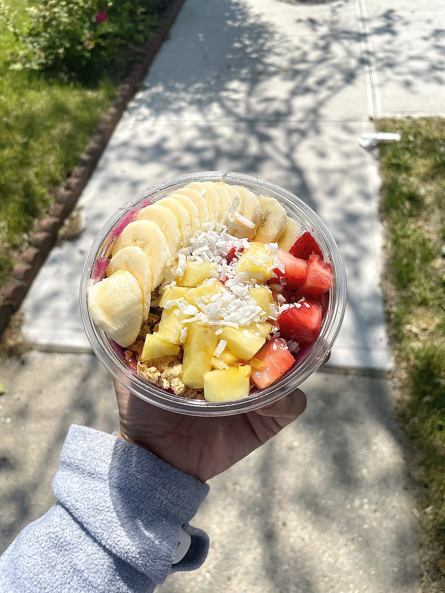 Bango Bowl with acai base, strawberries, bananas, granola, coconut, and drizzle of honey. I loved the granola oats used here at Bango Bowls. It was crispy, and light with a tinge of sweetness. The acai base was refreshing, and slightly tangy.