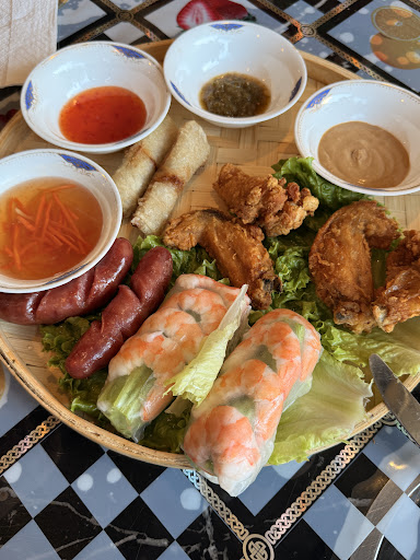 We ordered a sampler platter, and it was nothing short of amazing. The shrimp spring rolls were light, fresh, and packed with crisp veggies perfectly paired with a rich peanut dipping sauce. The crispy egg rolls had a golden crunch and burst with savory filling, especially delicious with the sweet chili sauce. Their Vietnamese sausage had that satisfying smoky-sweet flavor, while the fried chicken wings were juicy, crispy, and addictive. Every bite felt thoughtfully prepared and authentic.