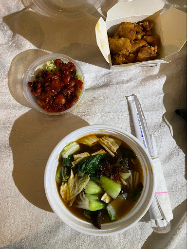 My fiance and I were in lower Manhattan looking for something delicious to eat that wasn't far from One WTC and wasn't expensive. We found this place online. It was less than 10 minutes walk. It wasn't busy when we arrived on a Saturday at 2pm. Upon entering, I'll see the menu is on the wall. It's not extensive. There were about 10 meals to pick from. The pork belly meal caught my eyes but my partner chose it. So of course I had to pick something else so we could try each other's food. I chose the bao bao rice. Both meals cost $9.75 each. We did not have to wait long for our meal. We sat at the small table near the counter. There are more seatings in the back. I wasn't sure we could freely go back there and sit. The staff in the front told us to sit in the front. Maybe the back was full. I didn't get to see it so I can't tell how big or how many seats there were. Back to the food. The food was absolutely delicious! Great portion for the price. Definitely filling. The food was flavorful, nicely seasoned. My partner and I really enjoyed our meal. Definitely will be back next time we are in...