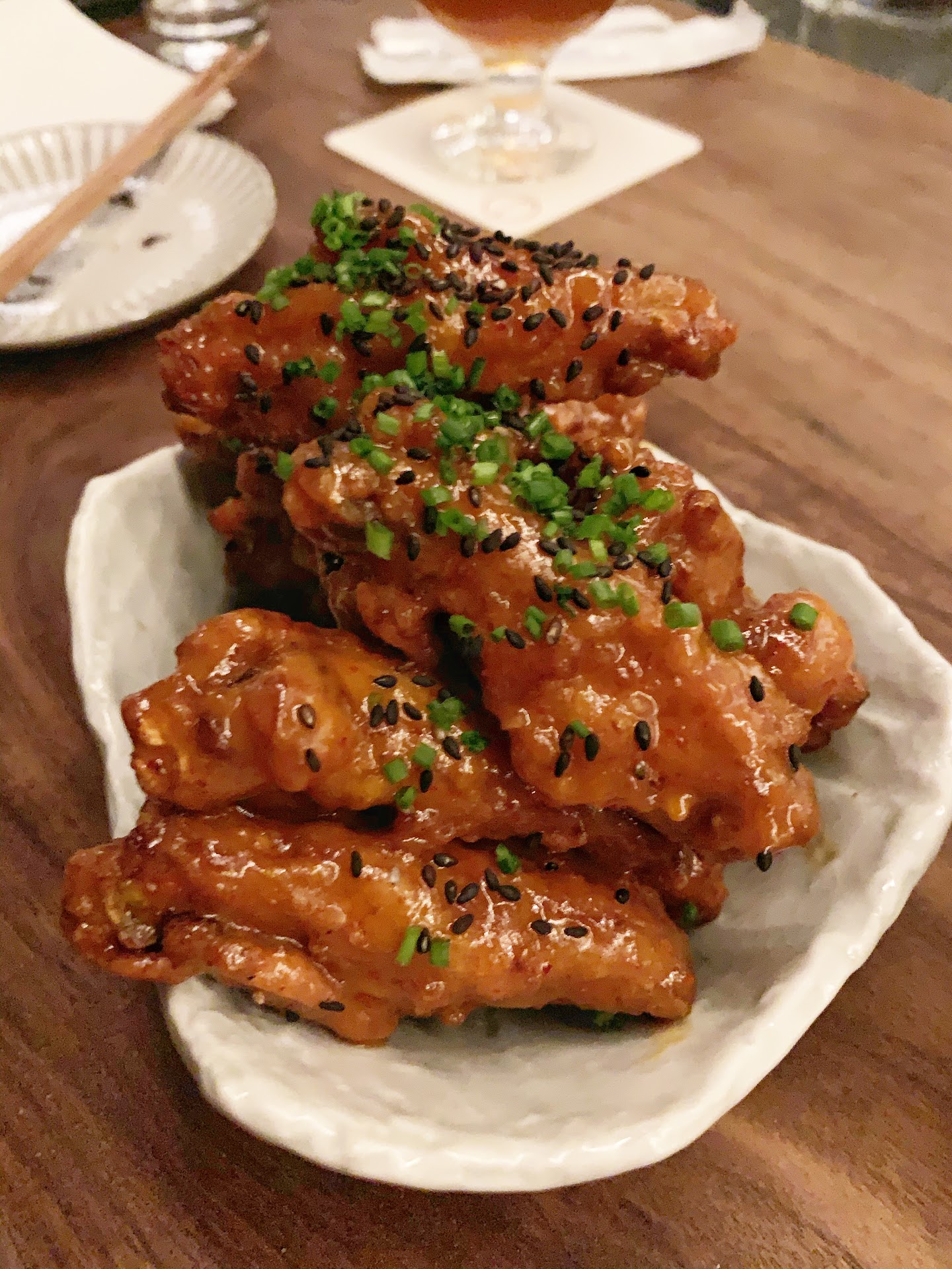 These folks have completely changed the game on coated wings. If I had to guess I would say itâs a light amount of rice flour, making for an insane textural experience. All the flaps are clipped into individual wings, so you can properly clean these bad boys in a hurry. Flavor was incredible, bursting with miso and sesame and a subtle building heat.